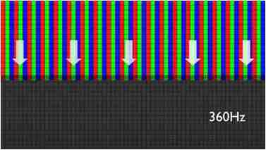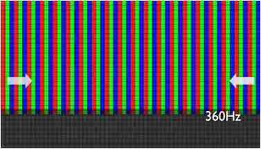 传统液晶驱动是从左到右单向进行,,,,在画面更新速度愈来越愈快的情况下,,,位于驱动线路末端的右下角区域,,画素的闸极来不及在短时间内获得足够电压,,,,无法显示出正确的颜色资讯。。。 |