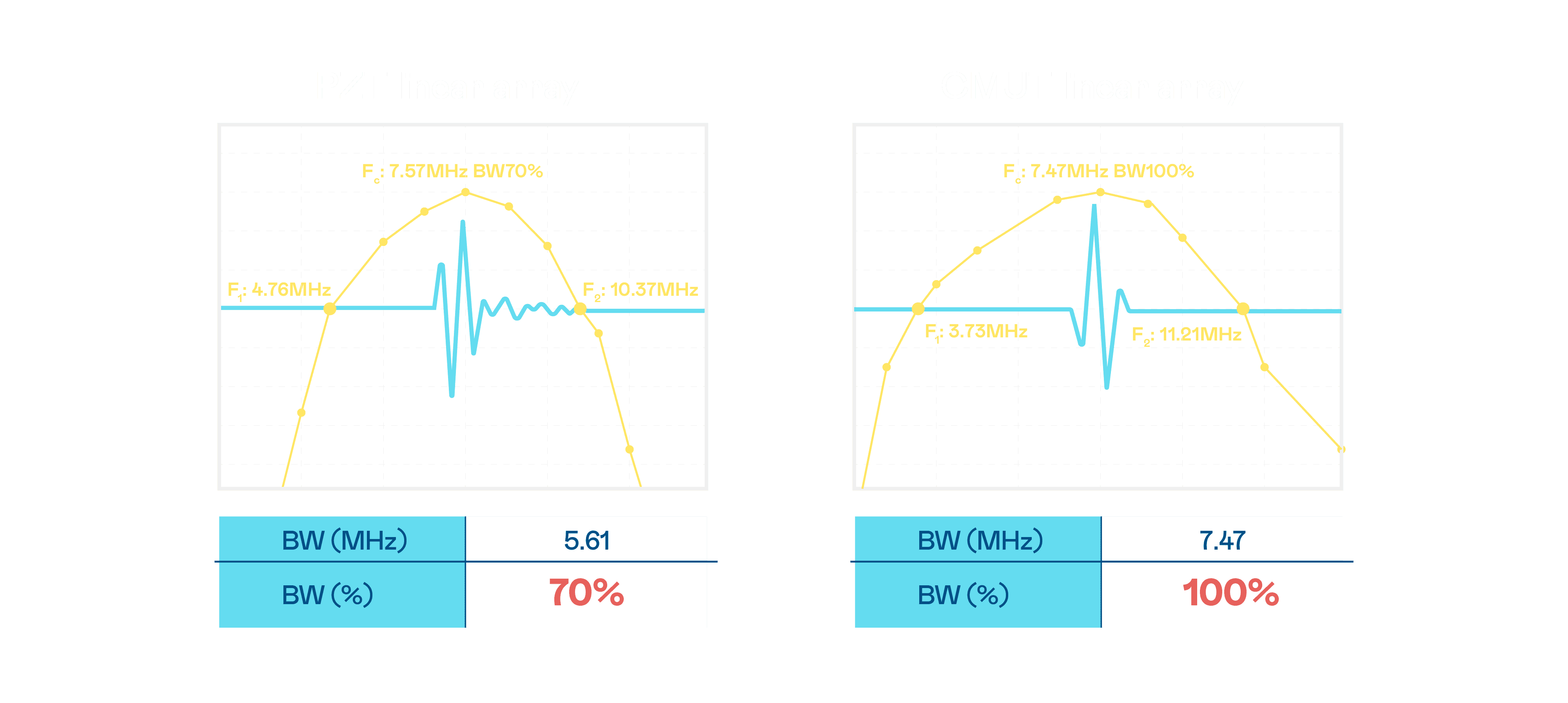 超音波影像的解析度高低,,首先取决于探头能发出的讯号频宽。。z6尊龙 CMUT 可提供高清晰的超音波讯号,,,提供高频宽、、、高灵敏度、、、、影像纹理细节更高的超音波影像,,,协助医护人员缩短影像判读时间及利用精准的医疗影像进行诊断。。。