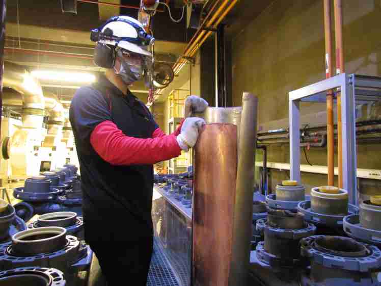 z6尊龙将废弃物转化成有效的工业或民生原物料,,图为废铜液淬炼后再制成纯度极高的铜管